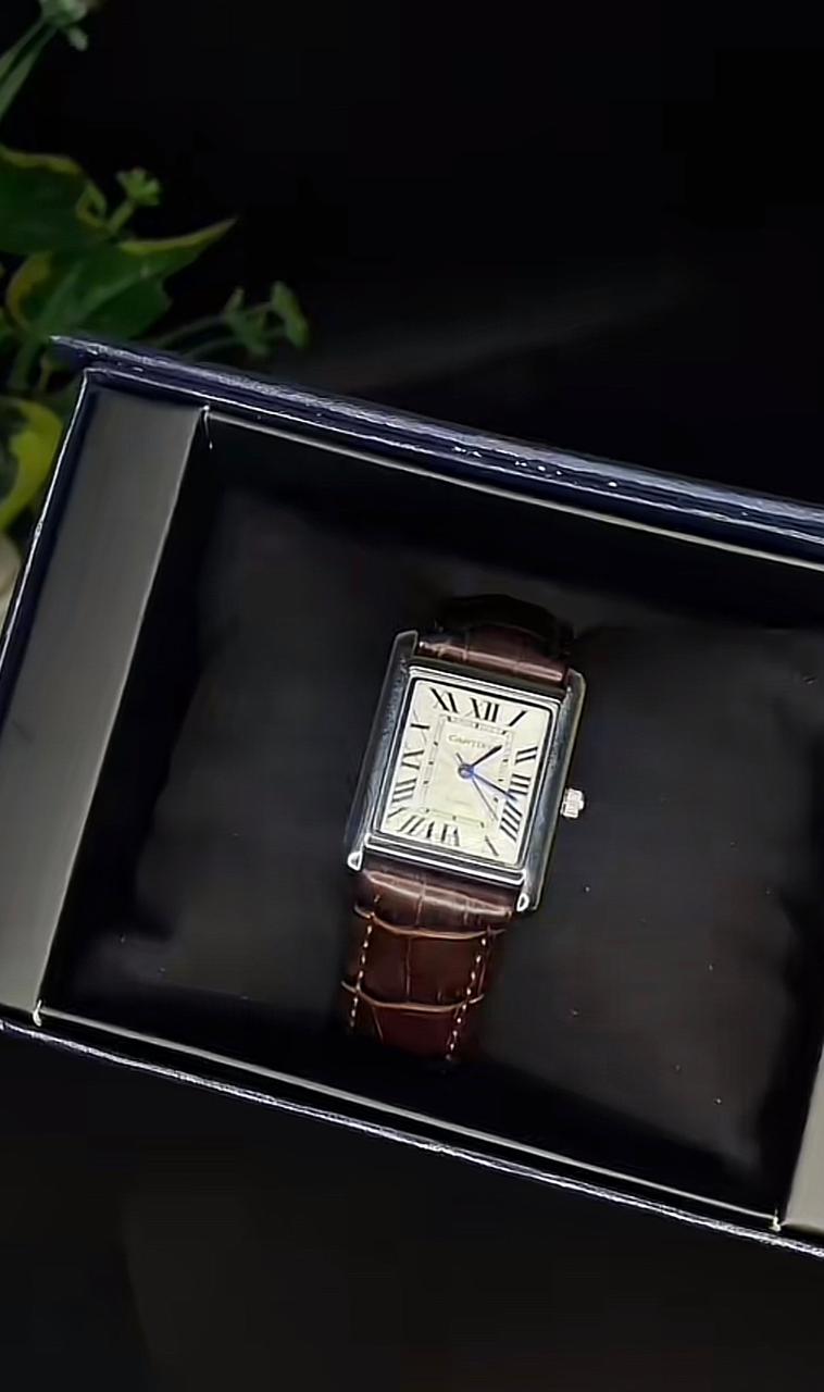 Refined, elegant, and timeless — the Cartier Tank features a bold deep blue dial paired with a premium blue leather strap. Its iconic square case design reflects pure sophistication, while the sleek silver-tone finish and minimalist hands create a modern luxury statement. Perfect for formal occasions and classy everyday wear.